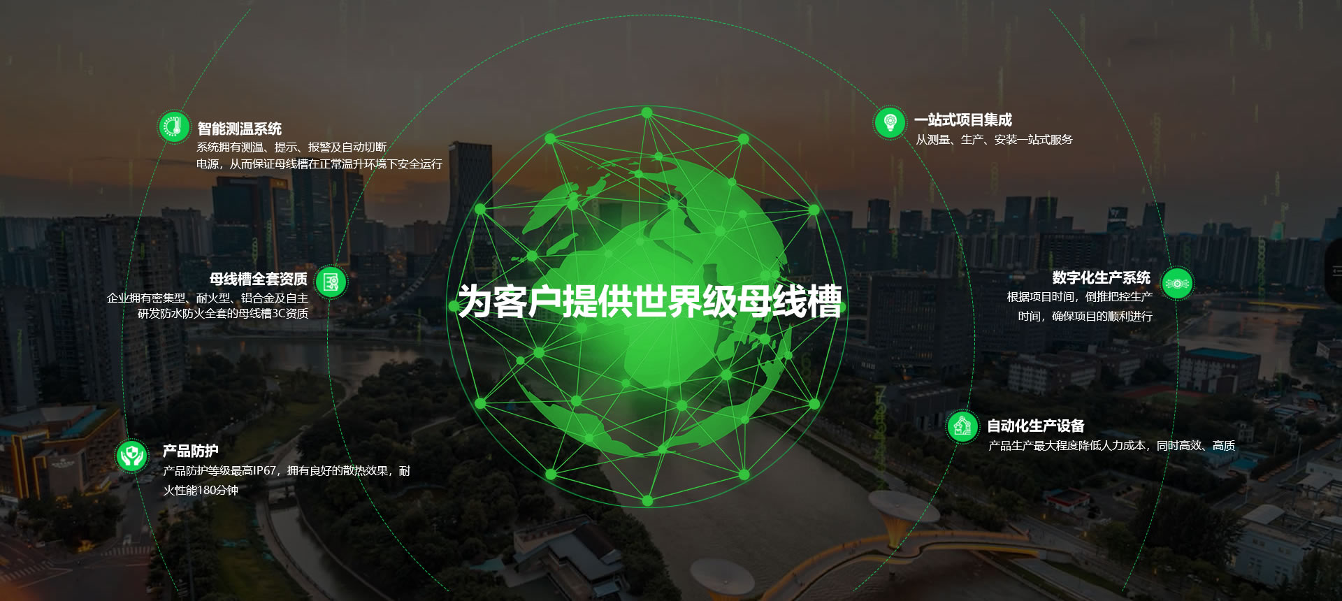 電力輸配電解決方案 電力母線槽(cao)輸配解決方案 高標電氣母線槽為先進工業、交通樞紐、商業綜合體、數據中心及國家電網等市場領域,提供母線配電解決方案業務。 密集型母線槽 耐火型母線槽 鋁合金母線槽 數據中心母線槽 防水防火母線槽 共箱高壓母線槽 澆注型母線槽