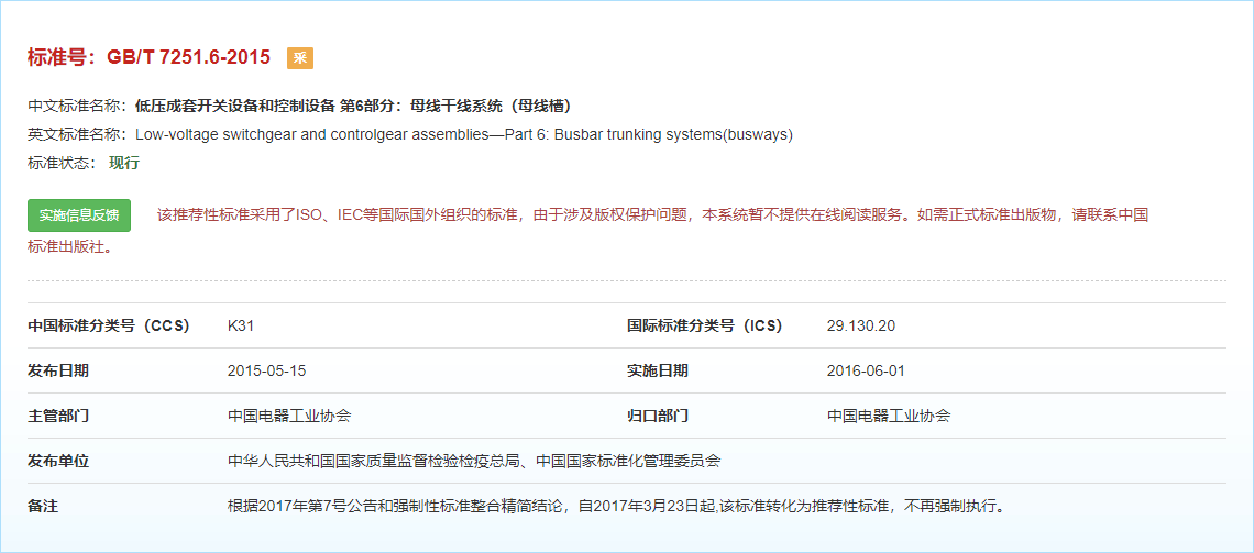GB7251.6-2015標準詳細規定了低壓成套開關設備和控制設備中母線干線系統的性能和要求。該標準的制定旨在確保母線槽的安全性、可靠性和有效性。母線槽……